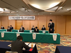 今年度は、コロナ禍の状況をふまえ労組側の参加人数を20名程度に絞り、推薦議員についても、各自治体1名の参加要請にとどめて、感染拡大防止に配慮した、全体で40名規模と例年より縮小して行われました。